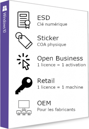 Aperçu rapide Windows 10 Professionnel Clés d'activation disponibles : ESD Activation... Prix 52,00 € Prix de base 67,50 € -15,50 € - 15,50 €